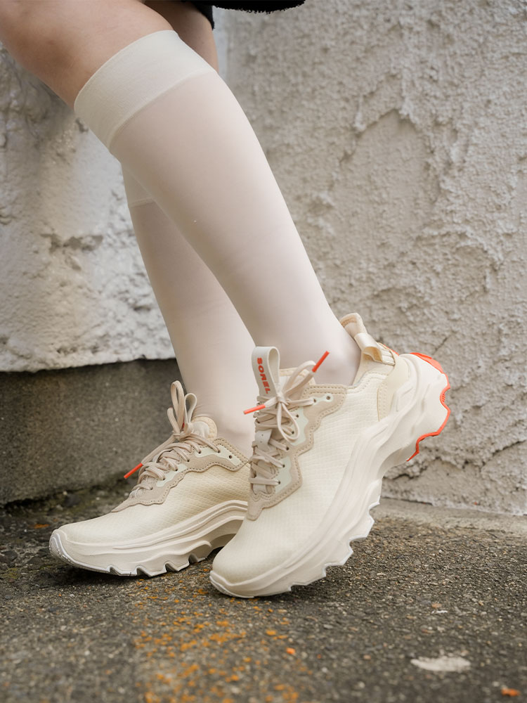 サンダルのソックス合わせ。小物でビビットなカラーを取り入れて。
