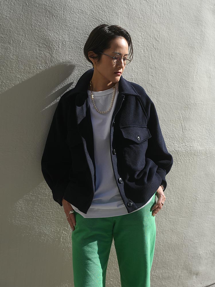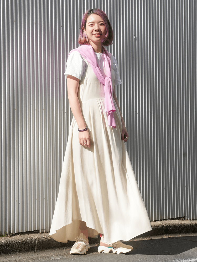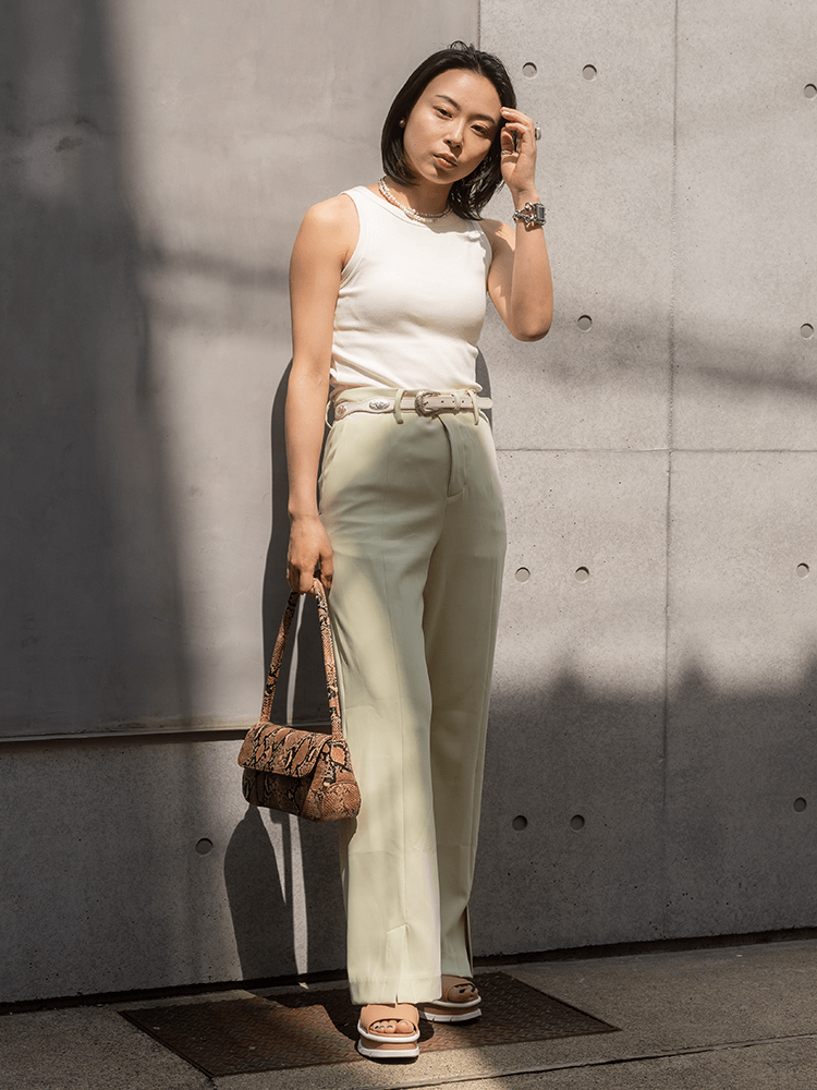 スポーティなアイテムなのでカッチリした印象のお洋服に合わせました。この春はショーツも合わせたいです。